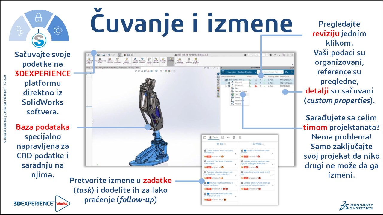 Sačuvajte fajlove bezbedno, konfigurišite i kreirajte varijante u savremenom okruženju, pratite izmene, lako upravljajte svim podacima i brzo prelazite iz starog dobrog SolidWorks-a u okruženje Platforme.