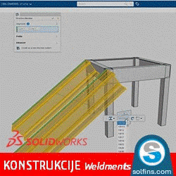 SolidWorks Weldments funkcionalnost je još jedan od popularnih alata u softveru koji je namenjen za projektovanje svih tipova konstrukcija iz profila. Parametarsko projektovanje znači da bilo koja izmena dimenzija pojedinačnog elementa automatski koriguje i sve povezane elemente.