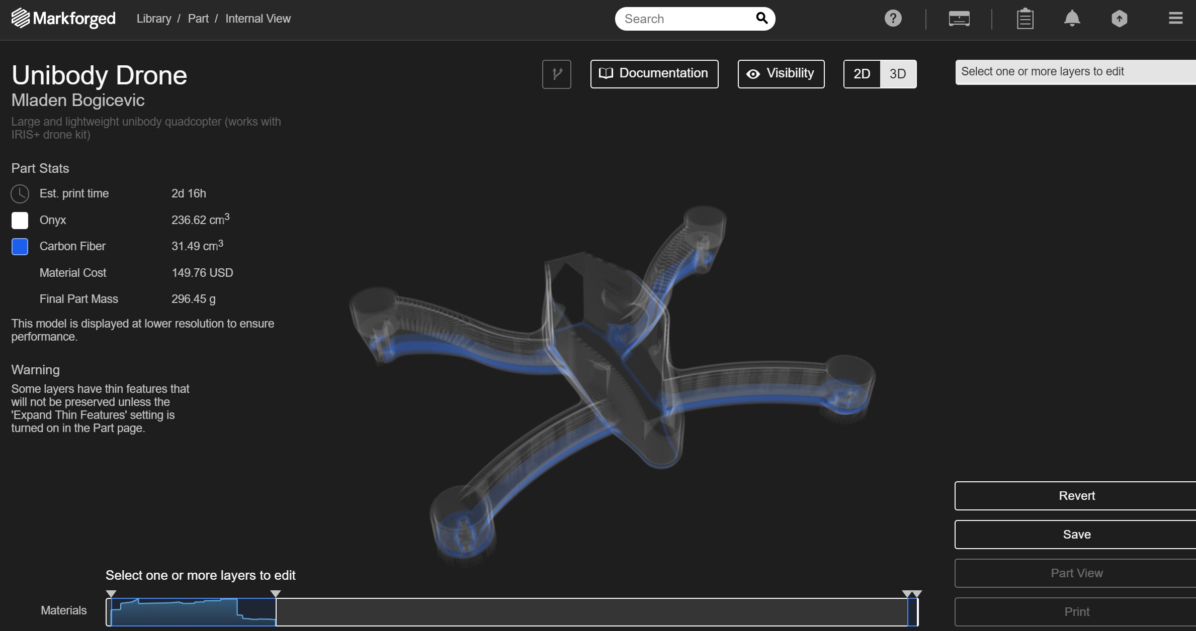 Otvorite bilo koji primer modela u vašoj Markforged biblioteci da testirate opcije i izvršite detaljne kalkulacije 3D štampe!