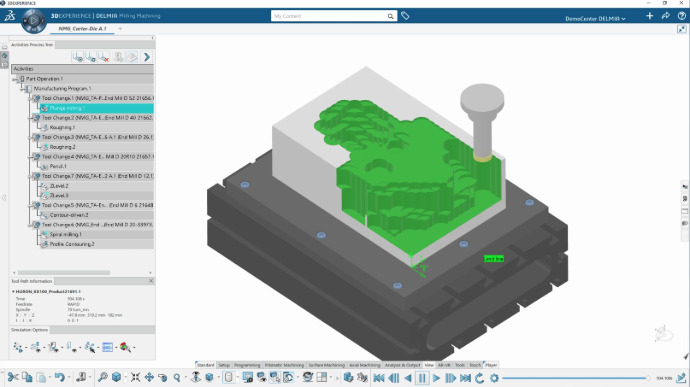 Programiranje glodalica za izradu kalupa i alata (mold & die) na 3DEXPERIENCE platformi se vrši pomoću role „NC Mold and Die Programmer“ u okviru DELMIA aplikacija. Ova aplikacija omogućava CNC programerima potpunu digitalnu kontrolu nad dizajniranjem, simulacijom i validacijom složenih obradnih procesa, što je ključ za preciznu i optimizovanu proizvodnju kalupa, alata i drugih 3D delova.