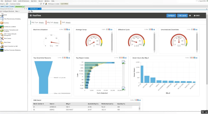 Quick Inspection radi iz Quality launchera i sa ShopData terminala, uz filtere Running/Scheduled/All po artiklu, procesu, radnom centru ili alatu, i vodi korisnika kroz uzorkovanje sa unapred zadatim brojem uzoraka. Svaki uzorak ima vremenski pečat, inspektora, gage i može se povezati sa radnim nalogom, lotom, serijskim brojem, radnim centrom i alatom, što kasniju analizu čini kontekstualnom.