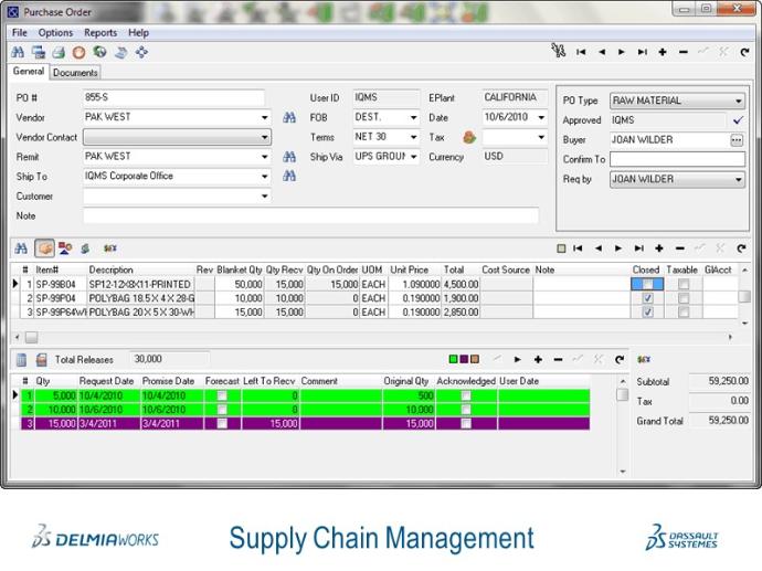 Ovaj DelmiaWorks modul omogućava detaljno praćenje i upravljanje svim delovima, proizvodima i materijalima koji stižu od dobavljača.
