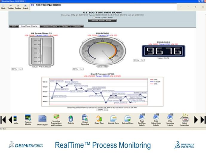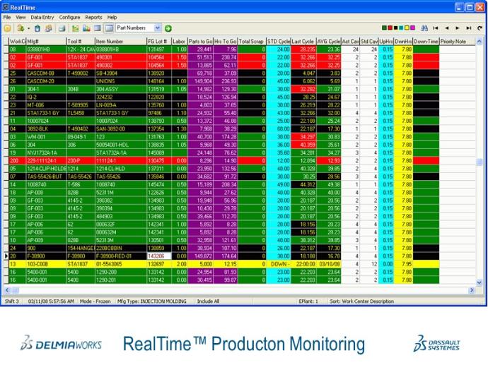 Svaki udar brizgaljke, svaki ciklus CNC mašine, mogu biti zabeleženi i istog trenutka prosleđeni DelmiaWorks sistemu i biti vam dostupni za pregled, uočavanje odstupanja, planove optimizacije, itd.